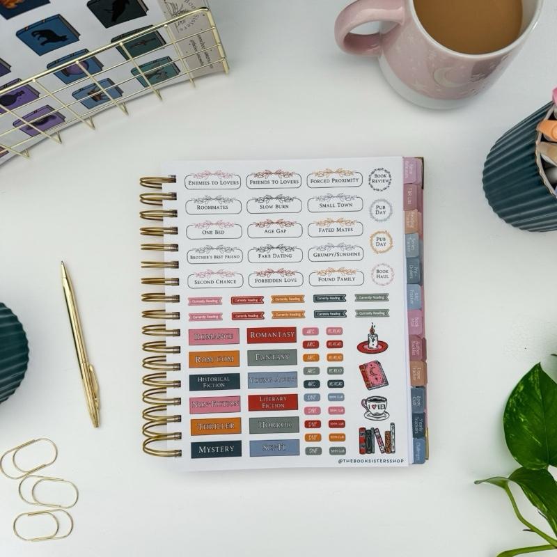 Includes a custom bookish sticker sheet, 25 laminated tabs for quick navigation, a back pocket for loose notes or bookmarks, and relaxing bookshelf coloring pages to unwind between chapters. ✂️🎨